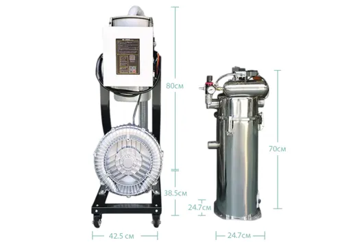 В нашем каталоге вы найдёте вакуумные загрузчики полимерного сырья для гранулы и для порошковых материалов. Мы предлагаем оборудование со следующими характеристиками: