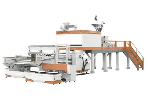 Автоматизированная линия, на которой осуществляется производство стрейч плёнки, может состоять из следующих агрегатов: