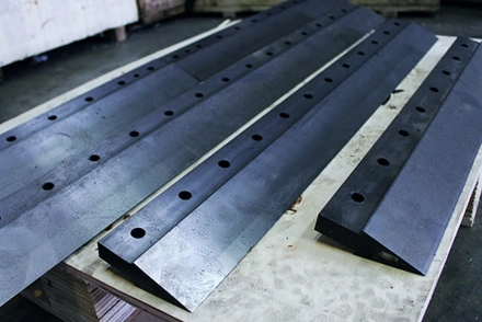 В гильотине рабочими элементами являются подвижный верхний и неподвижный нижний ножи. При смыкании лезвий происходит рассекание изделия по прямой линии.