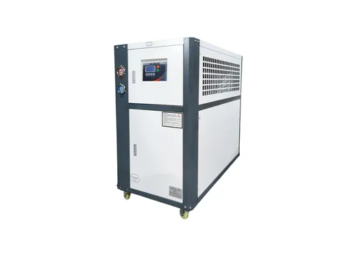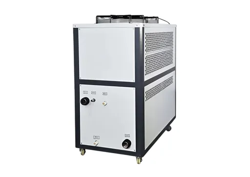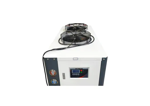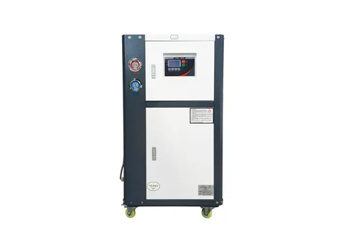 Температурный диапазон охлаждающей жидкости в чиллере промышленном может находиться в пределах -35°С - +35°C. Предназначенные для работы с термопластавтоматами установки используют незамерзающие жидкости, такие, как гликоль, или воду при температуре не ниже +5°C. Охлаждённая жидкость насоса подаётся по специальным каналам, контактирующим с нагретыми стенками оборудования, и отбирает тепло. Она постоянно циркулирует в замкнутом цикле, то охлаждаясь, то нагреваясь. Отведённое тепло выводится в окружающую среду.